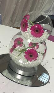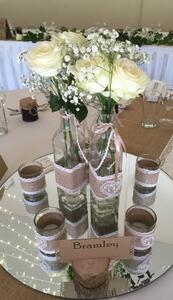 Mirror Plate & Jam Jars with Flowers from 8.00 each to hire