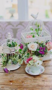 Birdcage with Flower Arrangements from 17.50 each to hire