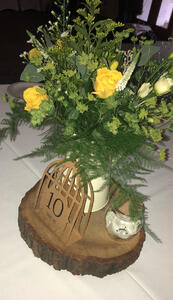 Log Slice & Jam Jars with Flowers from 8.00 each to hire